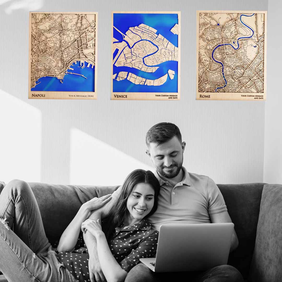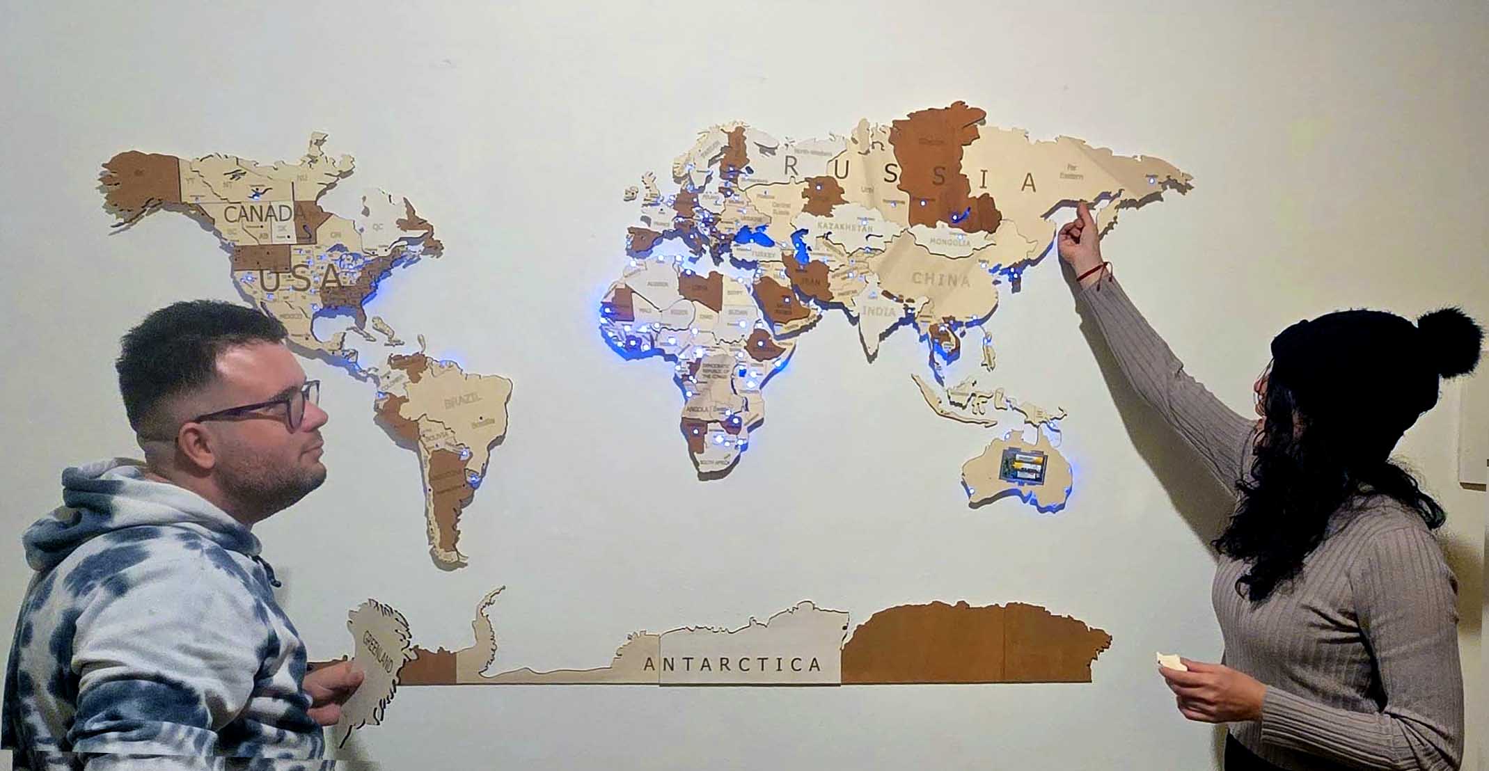 "Abbiamo ordinato una mappa personalizzata con le tappe dei nostri viaggi di coppia, ed è semplicemente spettacolare! La qualità del legno, i dettagli incisi e la possibilità di personalizzare ogni aspetto la rendono davvero unica. Tutti i nostri amici ci chiedono dove l’abbiamo trovata!"